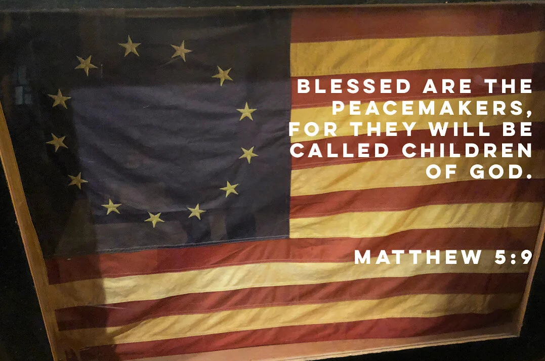 God is speaking to me about being a peacemaker. When this flag was created America was intertwined with the institution of slavery. Those who wanted peace on earth knew it couldn’t come while Africans were treated as subhuman.